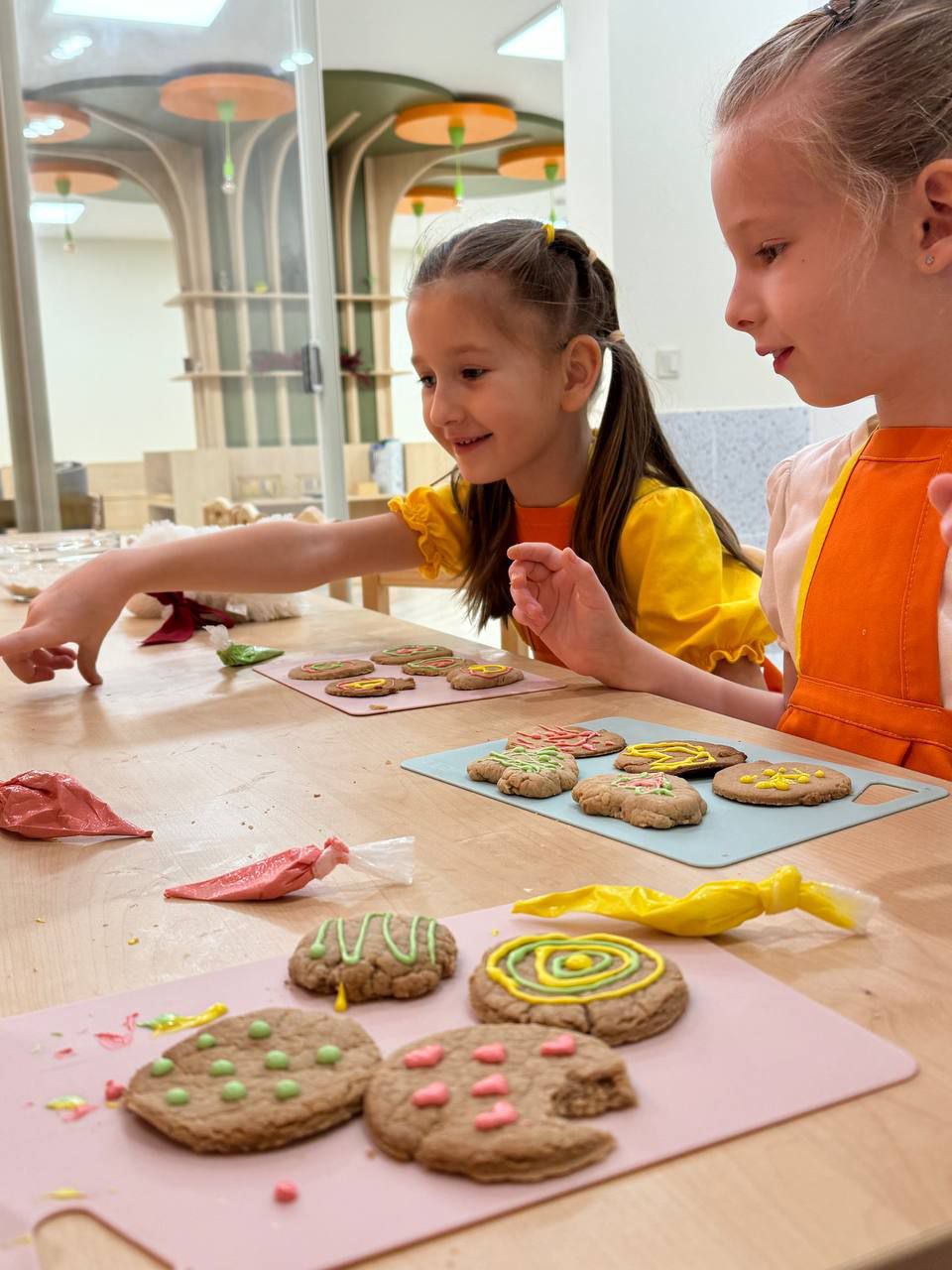 Всё начинается с улыбки и знакомства. Дети надевают свои собственные фартучки и колпаки, превращаясь в настоящих шеф-поварят. Мы обсуждаем, что будем готовить сегодня: может быть, это будут воздушные панкейки, пицца «Маргарита» с собственноручно раскатанным тестом или яркие фруктовые канапе.